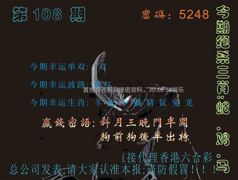 282期:澳门王牌澳彩④肖④码期期中奖✔